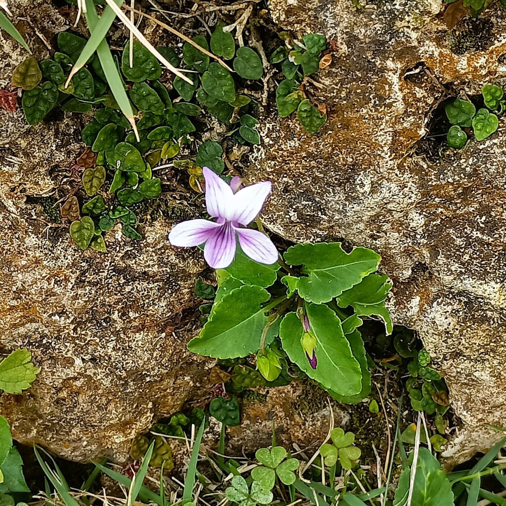 リュウキュウコスミレが咲いていました。群生しているのではなく広範囲に点在していたのですが、アリが種を運んでいるのかもしれませんね。心惹かれる花です。2020年までは、沖縄気象台の生物季節観測で開花日を記録していたのだそうです。
